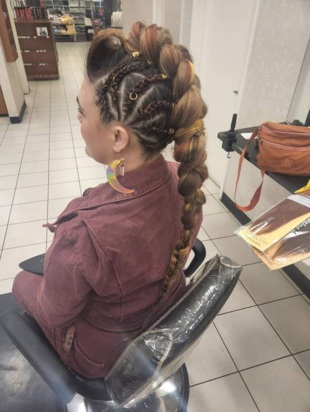 Haircuts(including fades), haircolor, style,braids, deep conditioning treatments, perms, also mani and pedi's.